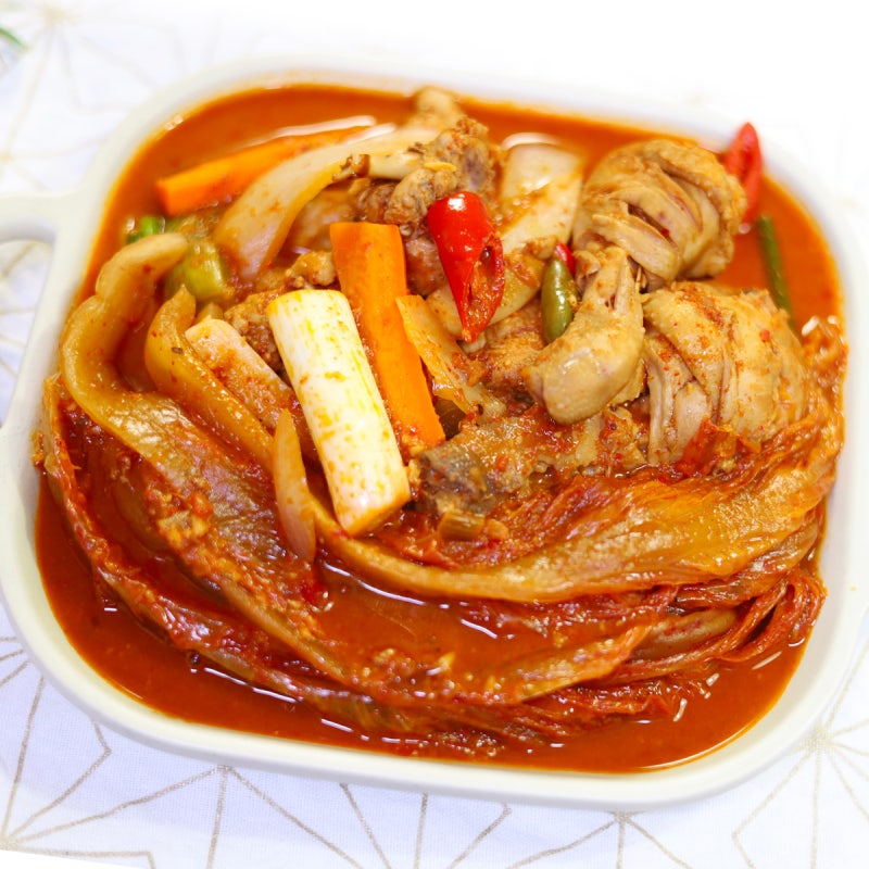 돼지고기를 넣어도 괜찮지만, 닭의 담백한 맛이 김치와 가장 잘 어울려요.